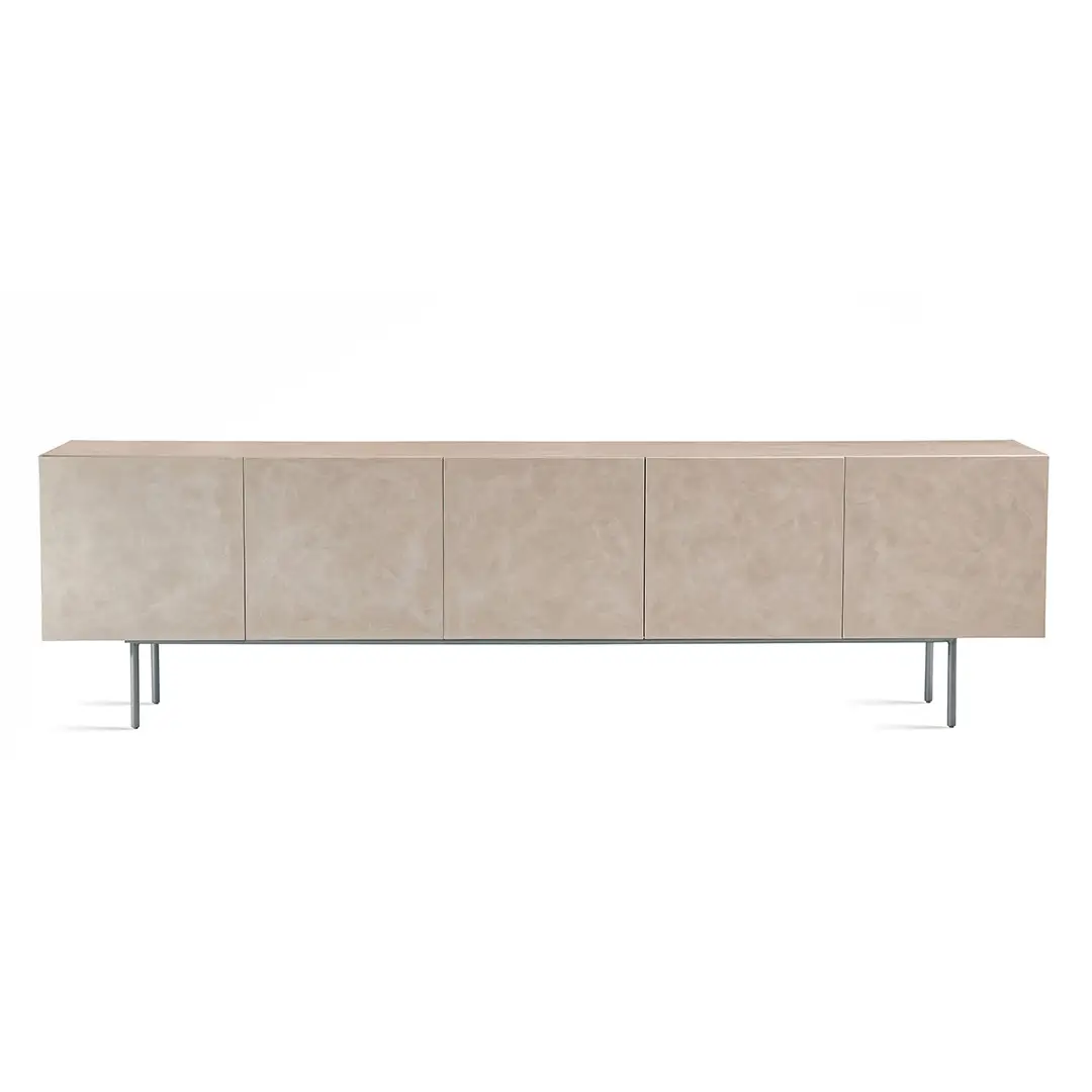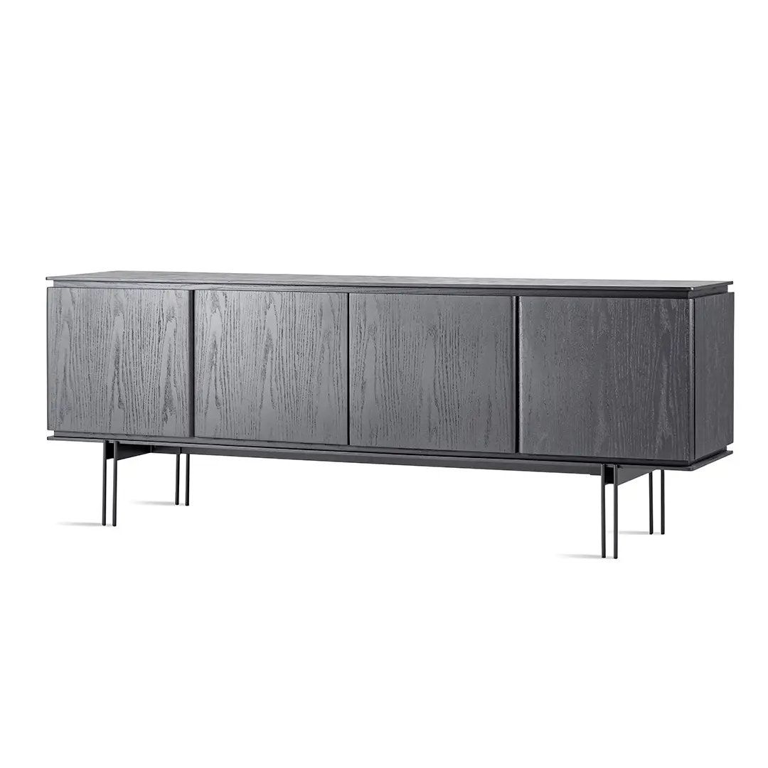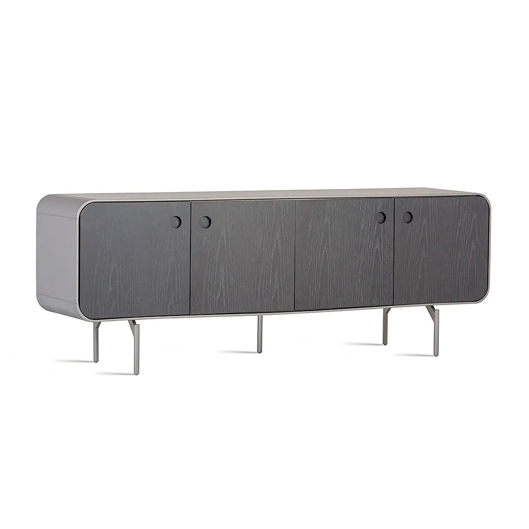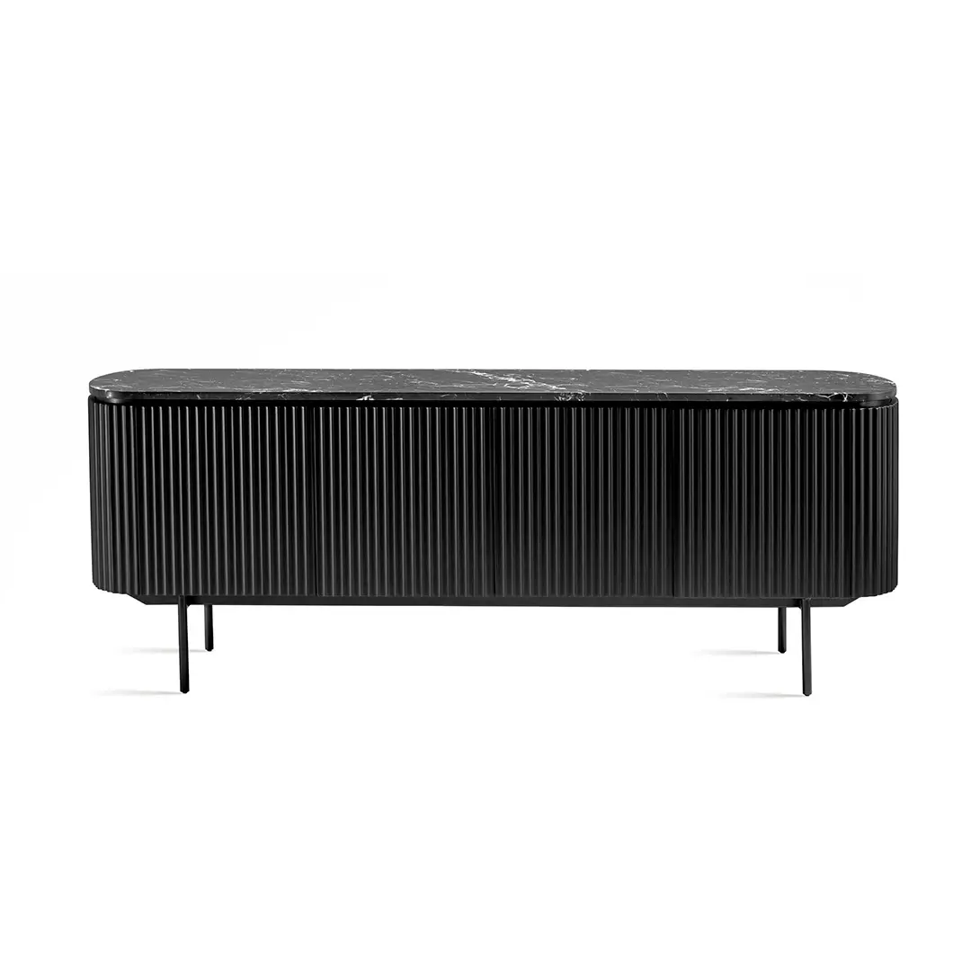 A linha Ruh, composta por bar e buffet, foi criada pela designer Larissa Diegoli e reflete um design contemporâneo e refinado. Com portas de madeira e pés em aço carbono pintado, o buffet oferece não apenas durabilidade, mas também um estilo sofisticado que está em sintonia com as mais recentes tendências em design de interiores.